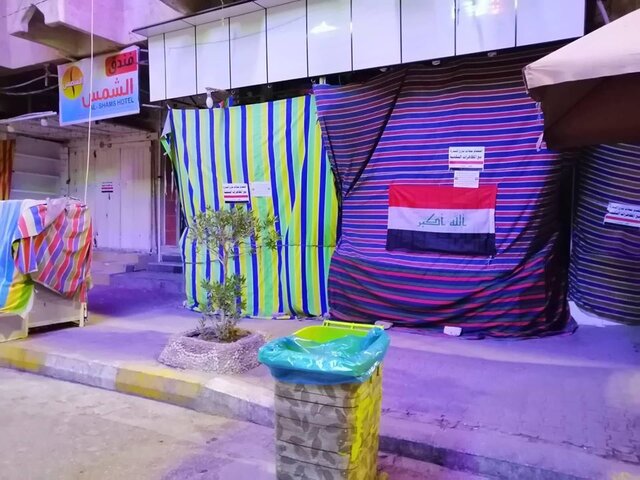 همچنین مغازهداران در کربلا مغازهها را بسته و روی آن دستنوشتهای با این مضمون آویزان کردند که "برای همبستگی با تظاهرکنندگان سراسر عراق تعطیل است."