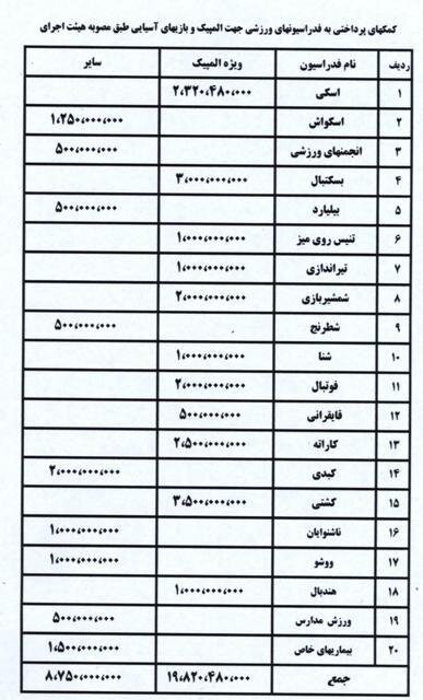 به گزارش ایسنا، کیکاوس سعیدی سرپرست دبیر کلی کمیته ملی المپیک ضمن بیان این مطلب ابراز داشت: جدای از پرداخت به هنگام بودجه مصوب فدراسیون های ورزشی در سالجاری از سوی کمیته ملی المپیک و بنا بر درخواست فدراسیونهای مختلف بویژه فدراسیون های المپیکی و پس از بررسی برنامه های ارائه شده در هیات اجرایی و مصوب شدن آن، تاکنون تقریبا مبلغ ۲۹ میلیارد ریال به فدراسیون مورد نظر پرداخت گردید.