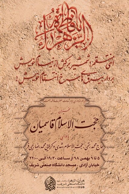 هیأت الزهرا دانشگاه صنعتی شریف به مناسبت فرا رسیدن ایام شهادت حضرت زهرا (س) مراسم عزاداری آن حضرت را برگزار میکند.