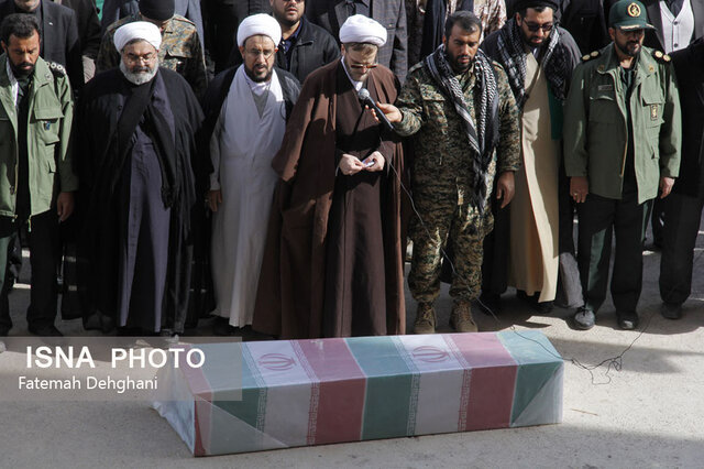 پیکر این شهید دفاع مقدس پس از قرائت پیام «آیت الله اعرافی» امام جمعه شهرستان و برپایی نماز، در محل مصلی میبد به خاک سپرده شد.