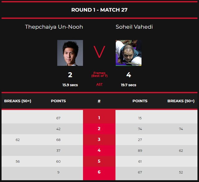 سهیل واحدی توانست در یک بازی بسیار خوب حریف خود را با نتیجه چهار بر دو شکست دهد.