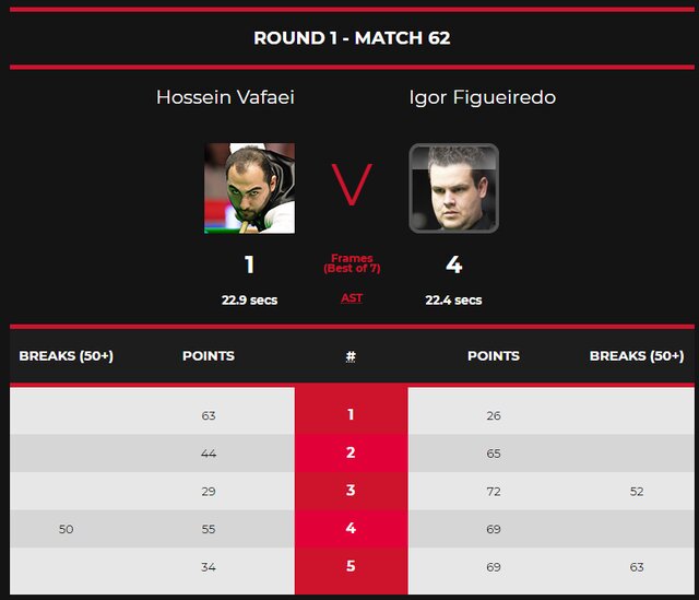 به گزارش ایسنا، رقابتهای اسنوکر آزاد ولز در بخش حرفهایها، بیست و یکم تا بیست و هفتم بهمنماه در حال پیگیری است که دو نماینده ایران در این مسابقات شرکت کرده اند. حسین وفایی نفر سی و نهم رنکینگ اسنوکر حرفهایها روز گذشته (سهشنبه) به مصاف ایگور فیگواردو نفر 110 رنکینگ از کشور برزیل رفت و با نتیجه چهار بر یک تن به شکستی عجیب داد.