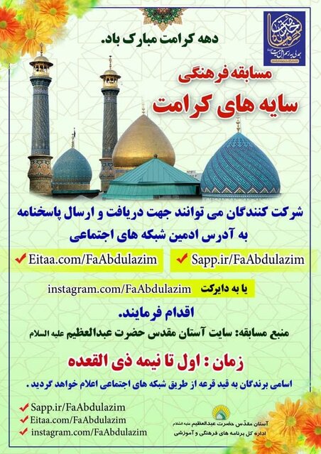 اهم برنامه‌های معاونت فرهنگی آستان مقدس حضرت عبدالعظیم الحسنی در دهه کرامت