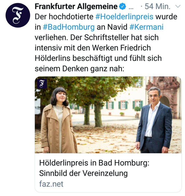 جایزه ادبی «فریدریش هولدرلین» به نوید کرمانی اعطا شد.