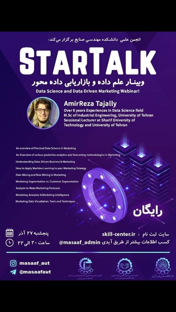 انجمن علمی دانشکده صنایع دانشگاه صنعتی امیرکبیر دومین بخش از وبینار استارتاک را تحت عنوان «علم داده و بازاریابی داده‌محور» برگزار می‌کند.