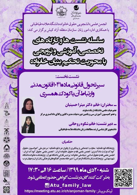 علاقهمندان می توانند جهت شرکت در این نشست به لینک https://meeting.atu.ac.ir/ch/anjoman-family مراجعه کنند.
