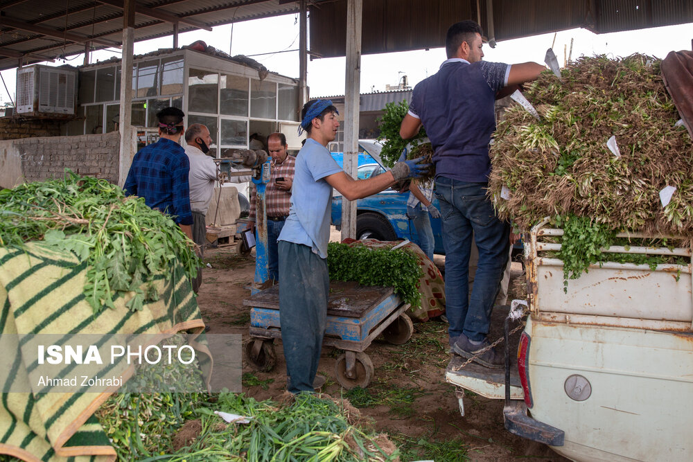 • کارگران بخش سبزی فروشان میدان سنتی میوه و تره بار قم