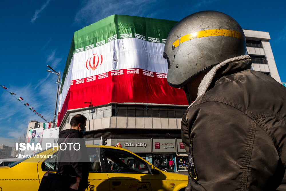 همزمان با دهه فجر و نزدیک شدن به سالروز پیروزی انقلاب اسلامی، اداره ارتباطات و امور بینالملل سازمان زیباسازی شهرداری تهران، یکصد المان مزین به پرچم جمهوری اسلامی ایران را در میدانها، خیابانها و تقاطعهای اصلی شهر تهران نصب کرد. پرچم «افتخار» نیز یکی از همین المانهاست که از چند روز گذشته با ابعادی بزرگ بر دیوارهٔ ساختمانی در ضلع شمال غرب میدان انقلاب نصب شده است.