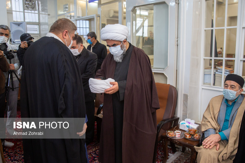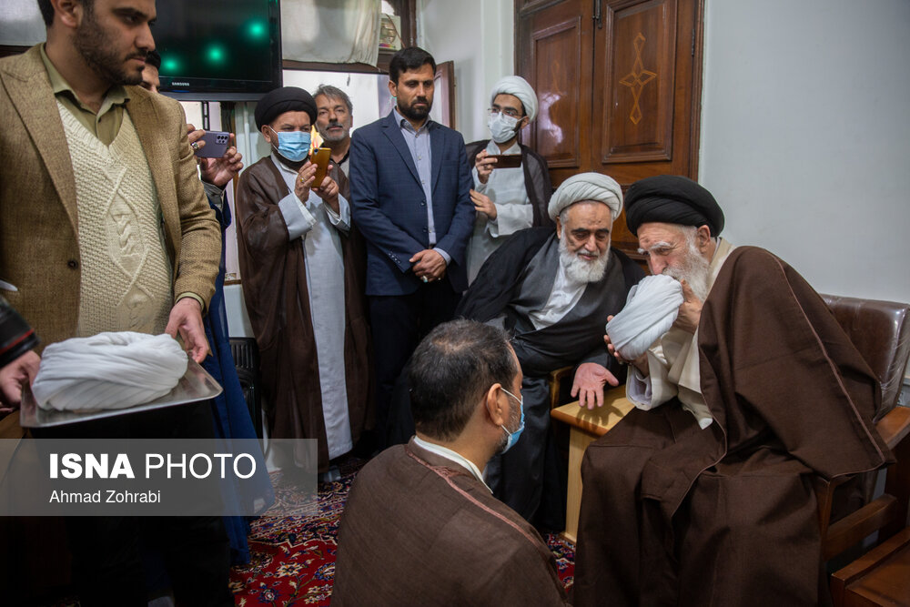 • مراسم عمامه گذاری طلاب توسط آیت الله محمدجواد فاضل لنکرانی در روز میلاد حضرت علی(ع)