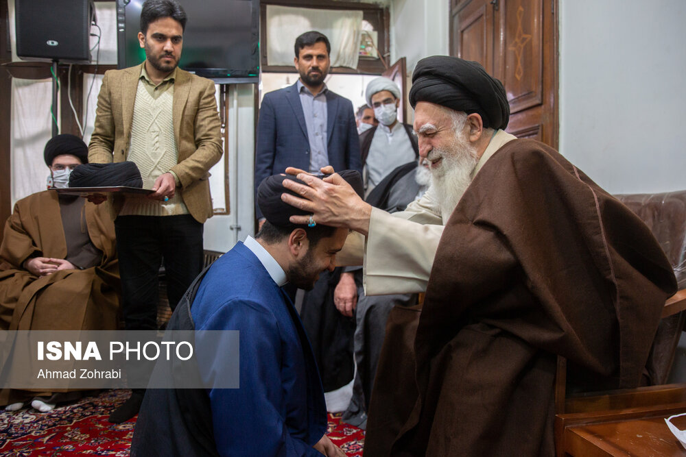 • مراسم عمامه گذاری طلاب توسط آیت الله علوی بروجردی در روز میلاد حضرت علی(ع)