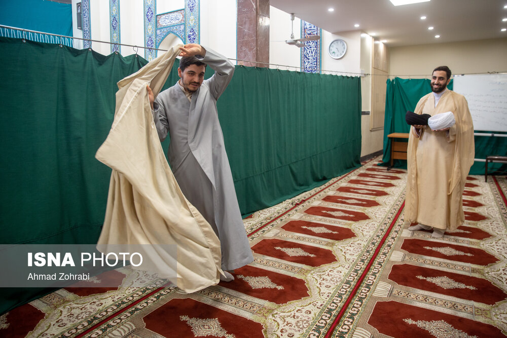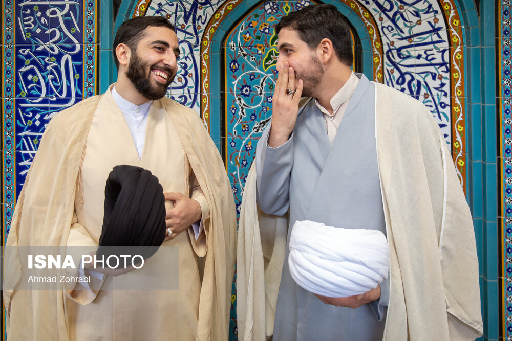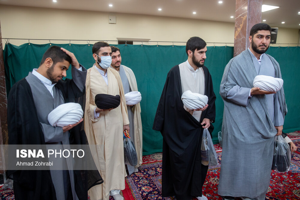 • عمامه گذاری طلاب در روز میلاد امام حسین(ع) - قم