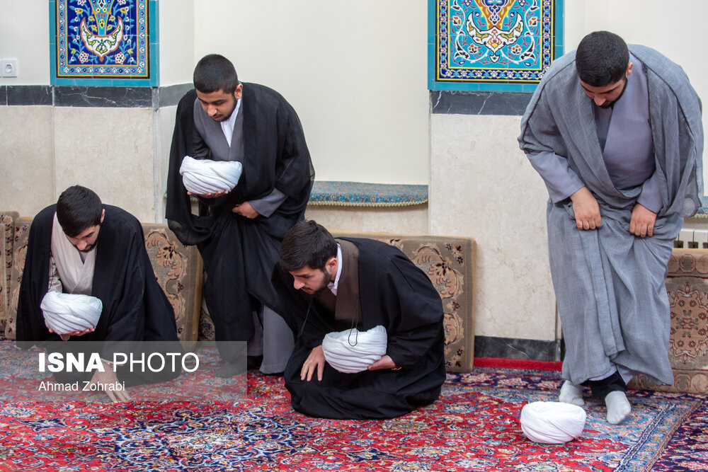 عمامه گذاری طلاب در روز میلاد امام حسین(ع) - قم