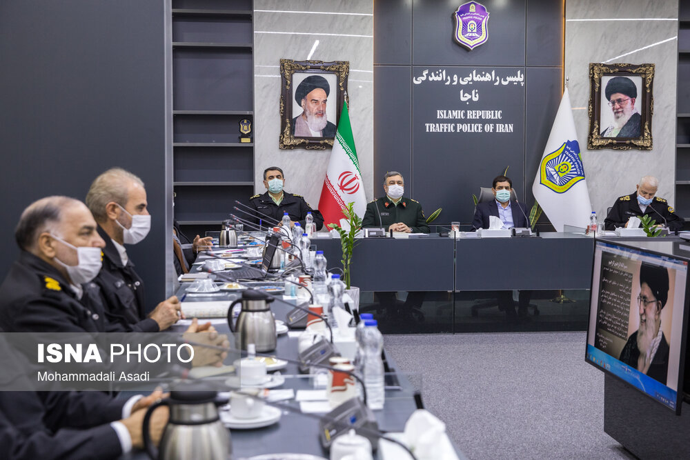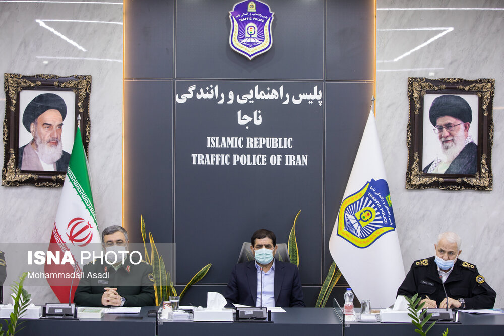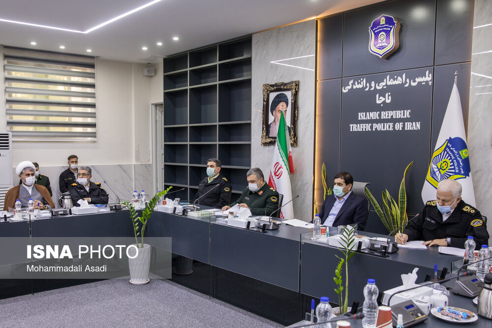 جلسه قرارگاه ترافیکی و انتظامی پلیس سه شنبه ۲۴ اسفند ۱۴۰۰ با حضور محمد مخبر معاون اول رئیس جمهور، سردار حسین اشتری فرمانده کل نیروی انتظامی و سردار سید کمال هادیانفر رئیس پلیس راهور در شهرک آزمایش برگزار شد.