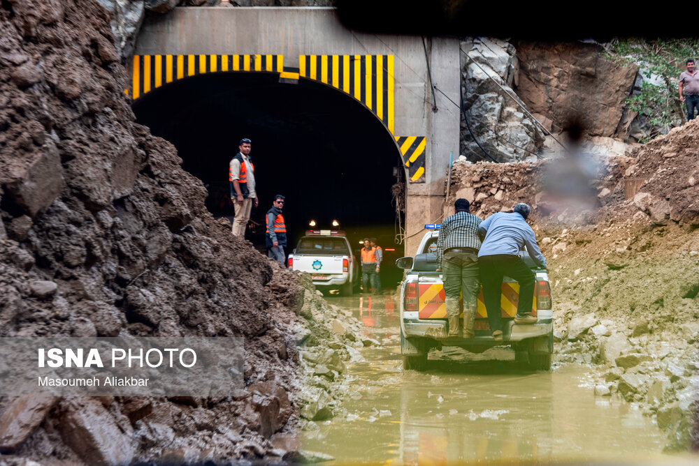 بازدید خبرنگاران از نقاط سیل‌زده جاده چالوس