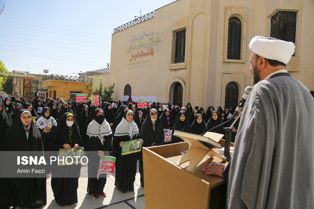تجمع بانوان حوزوی شیراز همزمان با سراسر کشور صبح یکشنبه ۲۳ مهرماه در محکومیت جنایات رژیم صهیونیستی در کشتار زنان و کودکان و حمایت از مردم مظلوم فلسطین در حوزه علمیه غدیریه شیراز برگزار شد.