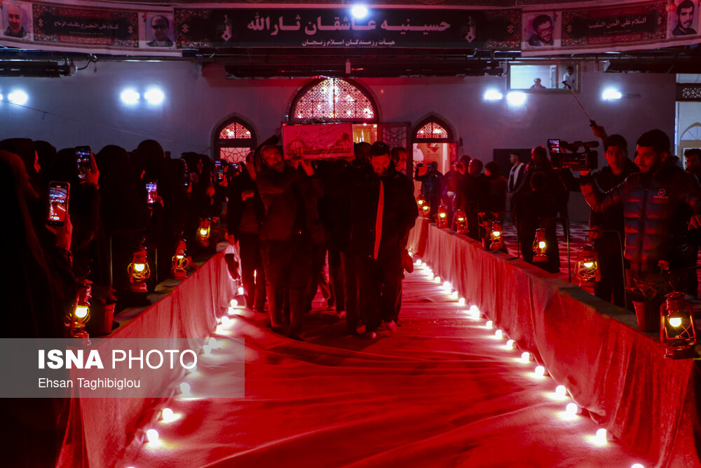 پیکر دو شهید گمنام دوران دفاع مقدس عصر امروز با استقبال پر شور مردم پایتخت شور و شعور حسینی، زنجان وارد این شهر شد.