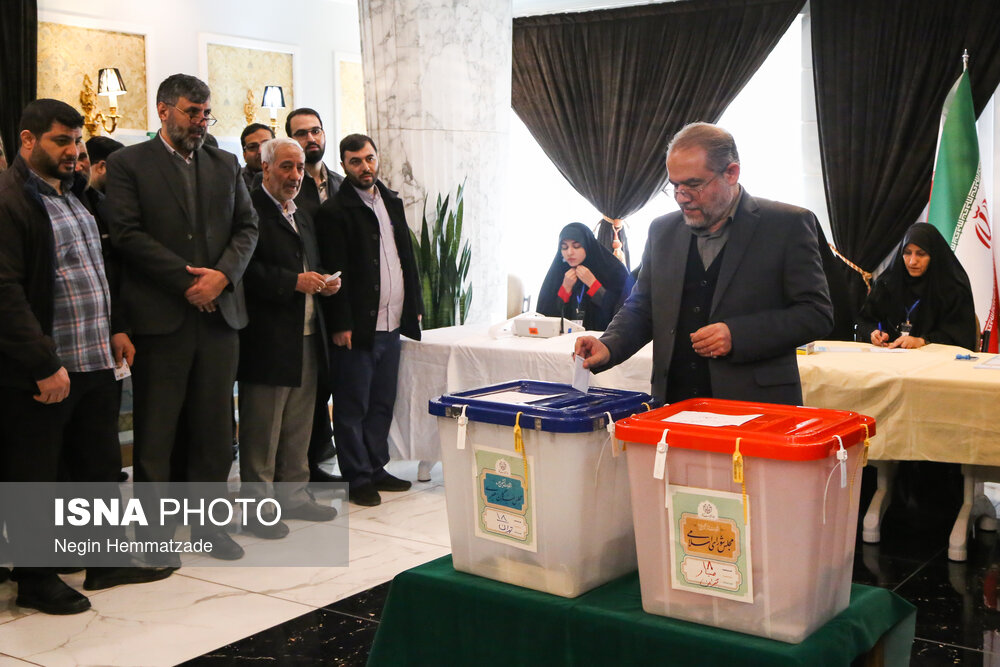 آیت‌الله احمد جنتی، دبیر شورای نگهبان صبح امروز ۱۱ اسفند ۱۴۰۲ برای شرکت در انتخابات دوازدهمین دوره مجلس شورای اسلامی و ششمین دوره مجلس خبرگان رهبری در ستاد مرکزی انتخابات در شورای نگهبان حاضر شد و رای خود را به صندوق انداخت.