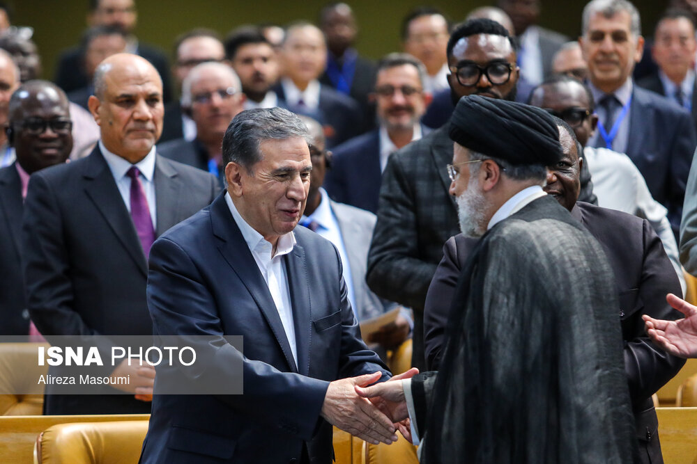 • سید ابراهیم رئیسی، رئیس‌جمهور  و  عباس علی‌آبادی، وزیر سمت در افتتاحیه ششمین نمایشگاه توانمندی‌های صادراتی ایران