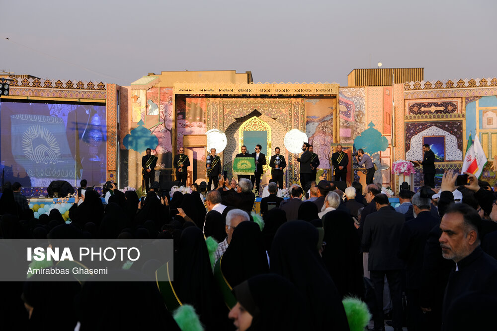 آیین اهتزاز بزرگترین پرچم رضوی در تهران با حضور فخاری استاندار تهران در بوستان مشاهیر برگزار شد.