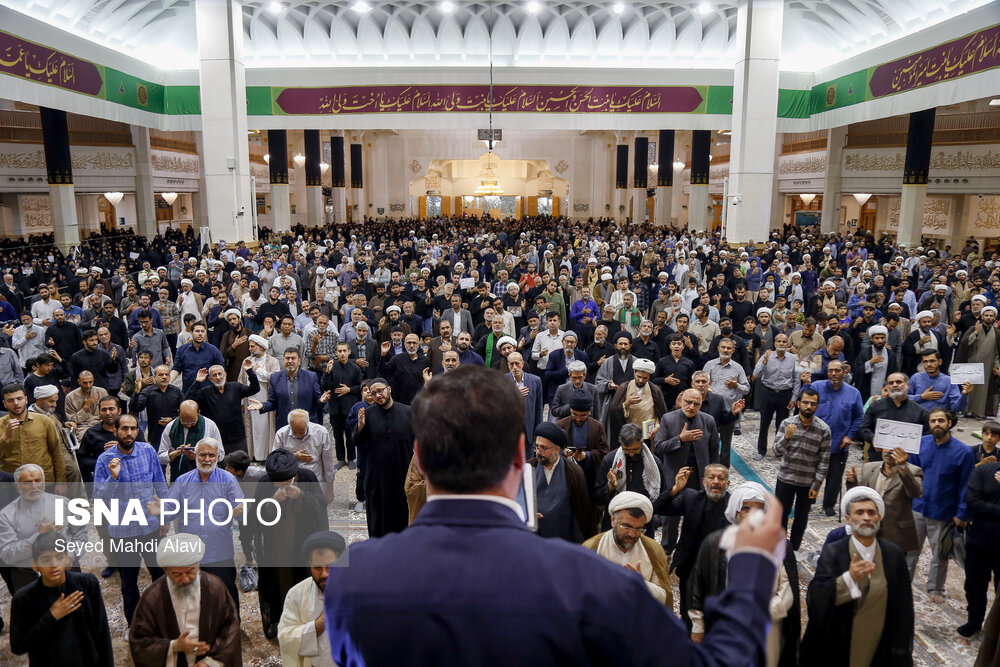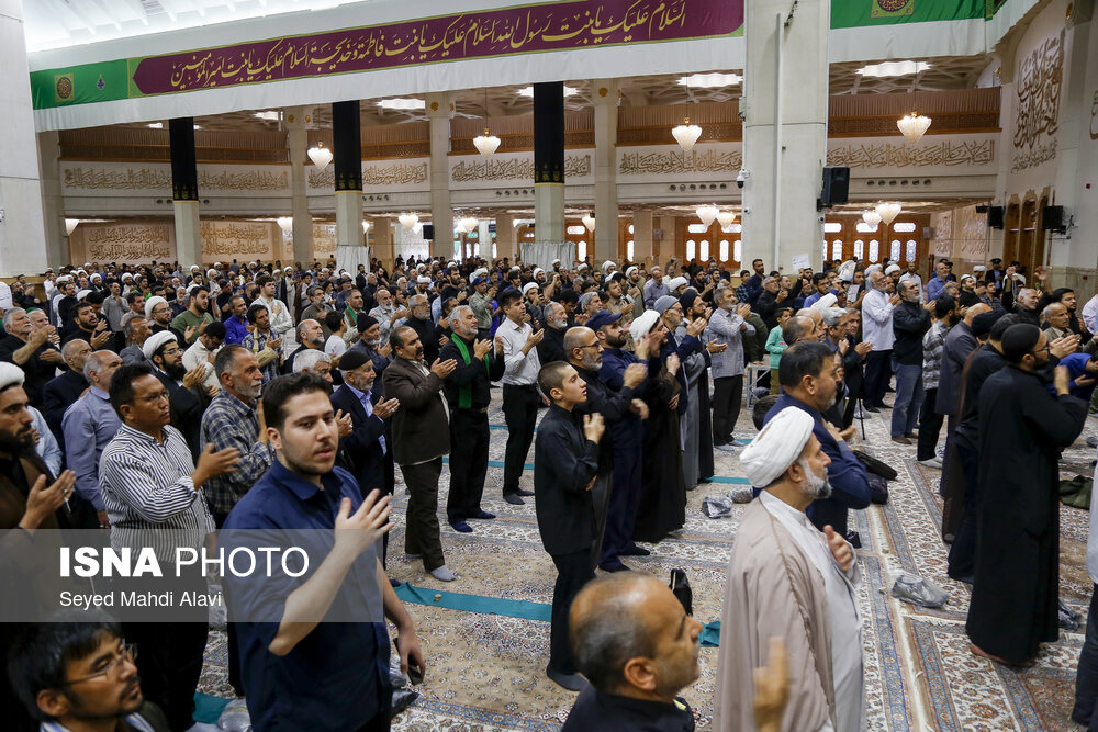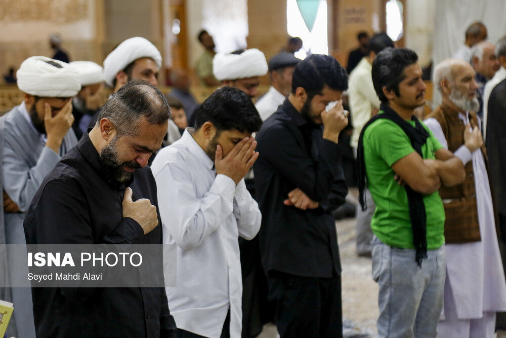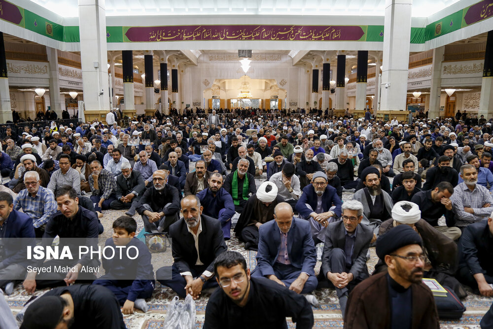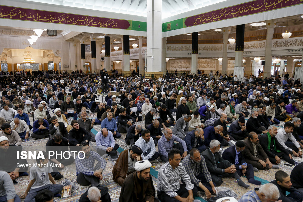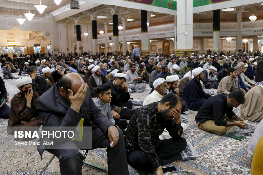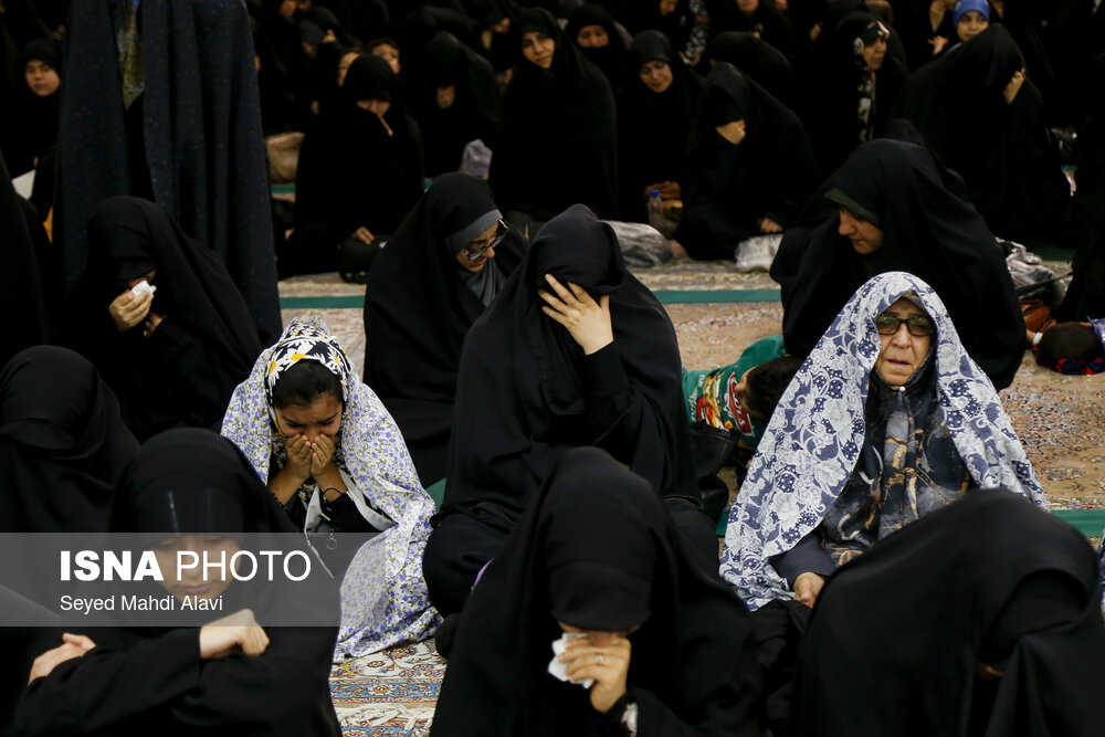 زائران و مجاوران حرم مطهر حضرت معصومه (س) دوشنبه ۳۱ اردیبهشت ۱۴۰۳ با تجمع در شبستان امام خمینی (ره) در سوگ از دست دادن سید ابراهیم رئیسی، رئیس جمهور عزاداری کردند.