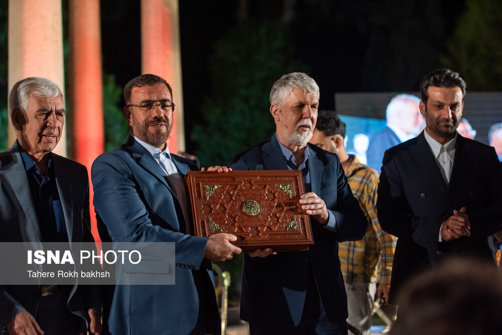 • سید عباس صالحی، وزیر ارشاد و حسین علی امیری، استاندار فارس در مراسم بزرگداشت روز حافظ - شیراز