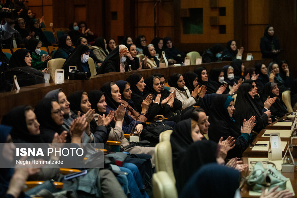 • شینا انصاری، معاون رئیس‌جمهور و رئیس سازمان حفاظت محیط زیست، فاطمه مهاجرانی، سخنگوی دولت در آیین افتتاحیه هفته زن و تکریم مقام مادر