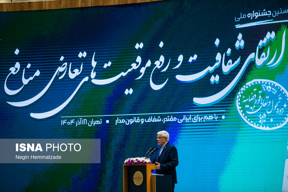 جشنواره ارتقاء شفافیت و رفع موقعیت های تعارض منافع صبح سه شنبه ( ۱۸ آذر ۱۴۰۴ ) با حضور محمدرضا عارف معاون اول رییس جمهور و تعدادی از وزرای دولت چهاردهم در محل سالن اجلاس سران برگزار شد.