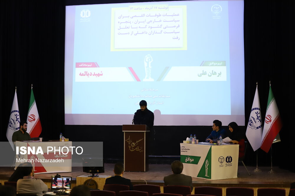 چهاردهمین دوره مسابقات ملی مناظره دانشجویان ایران در آذربایجانشرقی با حضور ۶۶ تیم از دانشگاههای مختلف استان به صورت فشرده و برنامه ریزی شده از دو هفته گذشته در دو سالن به صورت همزمان در سینمای جهاد دانشگاهی استان و دانشکده ادبیات دانشگاه تبریز در حال برگزاری بوده و امروز، مرحله نیمه نهایی این مسابقات برگزار شد.
