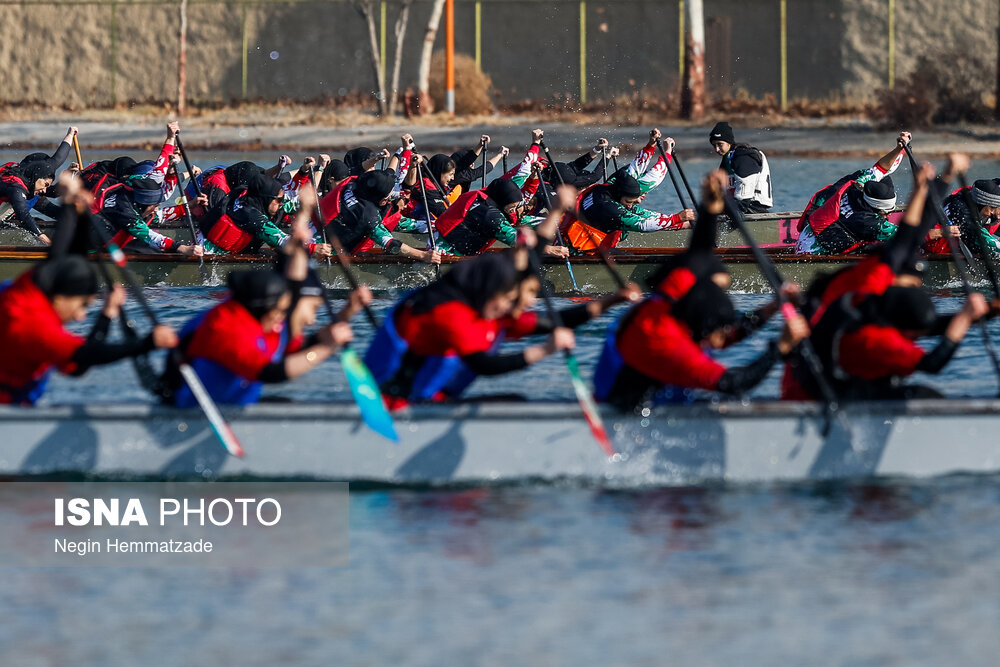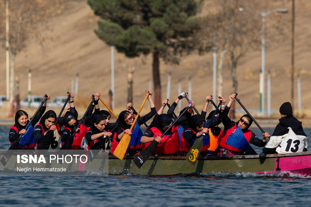 مسابقات «لیگ قایقرانی دراگونبوت» بانوان، صبح دوشنبه ۲۴ آذرماه ۱۴۰۴ در دریاچه آزادی برگزار شد.