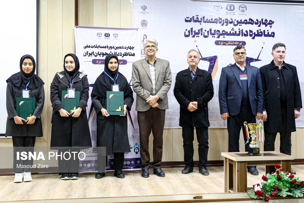 چهاردهمین دوره مسابقات ملی مناظره دانشجویان ایران در مرحله استانی یزد، ظهر امروز یکشنبه ۳۰ آذر ماه، با معرفی تیم‌های برتر و برگزاری دیدار رده‌بندی و فینال در سالن آمفی‌تئاتر دانشگاه علم و هنر به کار خود پایان داد. در دیدار فینال، تیم «ردام» از دانشگاه علم و هنر با ترکیب زهرا بورقی، فاطمه صباغ‌زاده، آیدا زارع‌زاده و مها حاتمی، موفق شد تیم «عدالت» از دانشگاه میبد متشکل از آمنه قدیمی، عسل فرجزاده، راضیه علی‌عسگری و مهدیه رحیمی را شکست داده و عنوان قهرمانی این دوره از مسابقات را از آن خود کند؛ همچنین تیم «تراز» از دانشگاه فرهنگیان به مقام سوم دست یافت و تیم «دادآفرین» از دانشگاه میبد در جایگاه چهارم ایستاد.