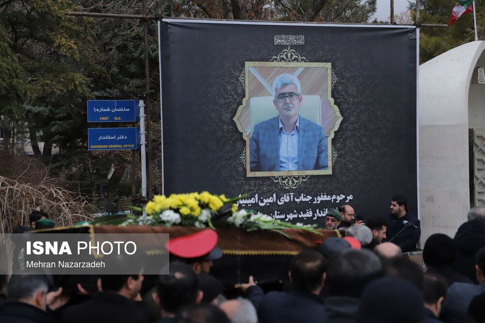 مراسم تشییع پیکر مرحوم امین امینیان؛ فرماندار فقید شهرستان مراغه، صبح روز یکشنبه ۷ دی ۱۴۰۴، با حضور امام جمعه تبریز، استاندار آذربایجان شرقی، جمعی از مسئولان استانی، فرماندهان نظامی و اقشار مختلف مردم در محوطه عمارت استانداری آذربایجان شرقی برگزار شد.