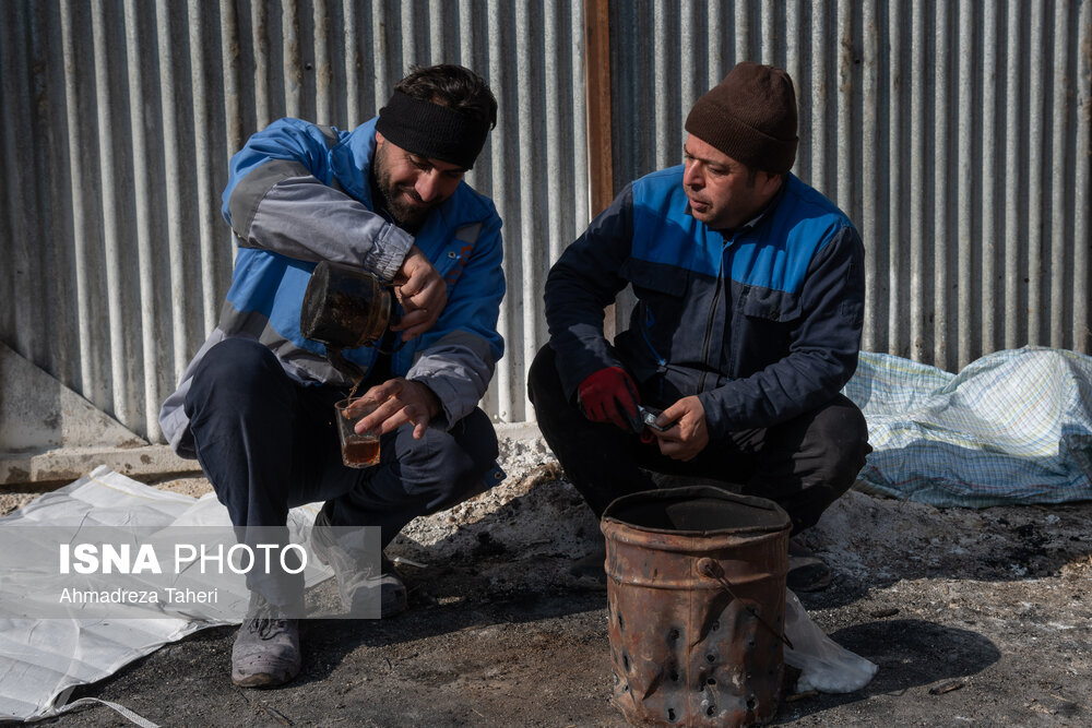 • کارگران انبار تخلیه شکر خام در حال استراحت هستند.