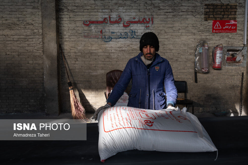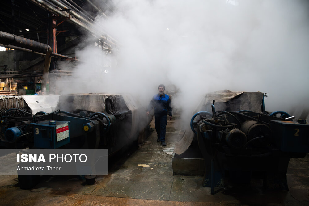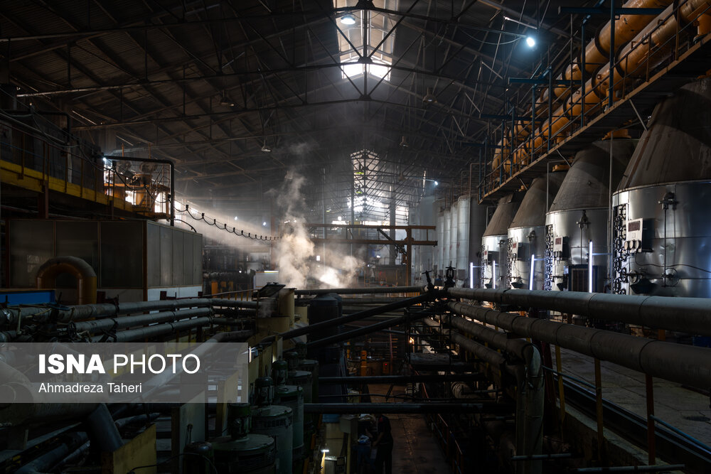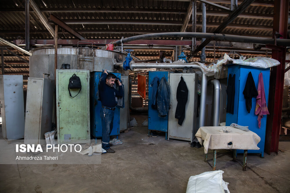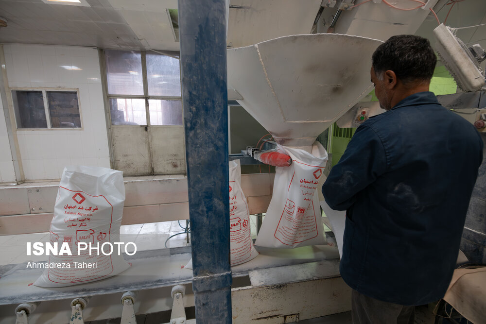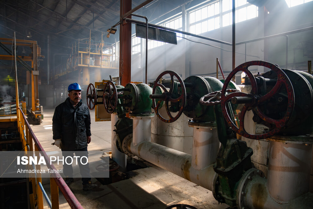 • یکی از کارگران کارخانه قند اصفهان در سالن اصلی کارخانه.