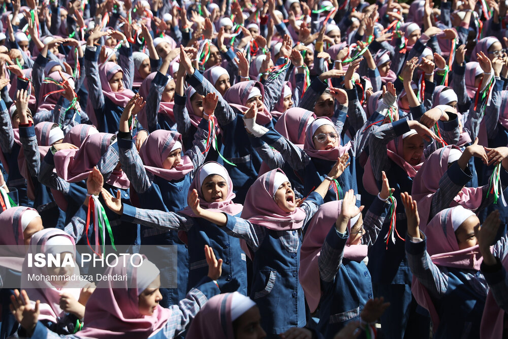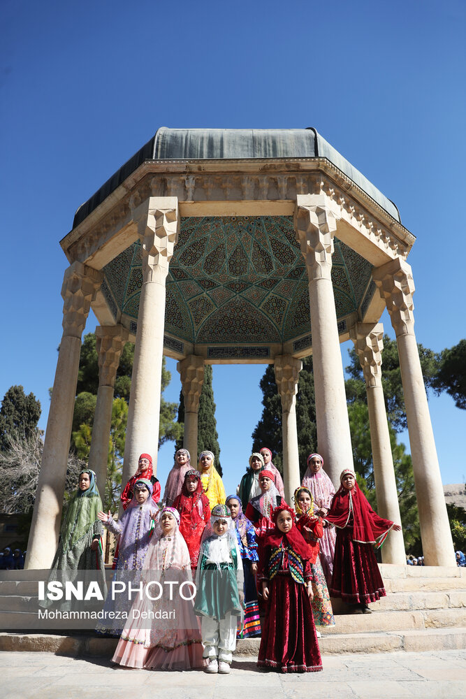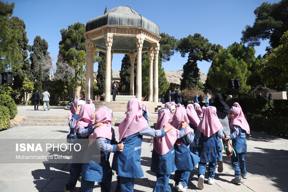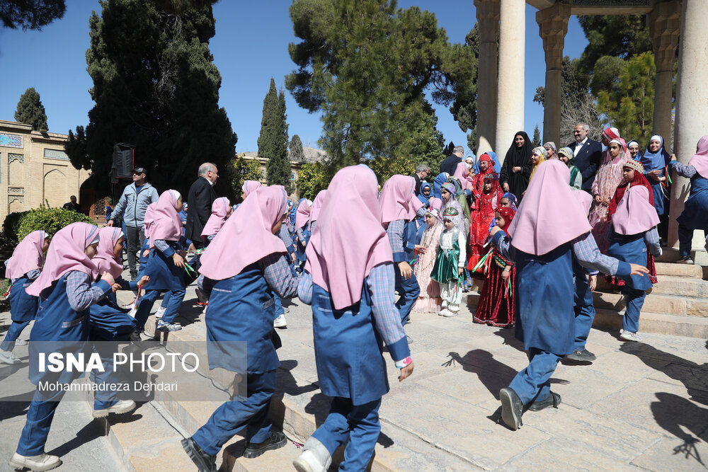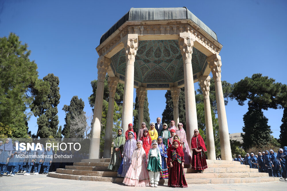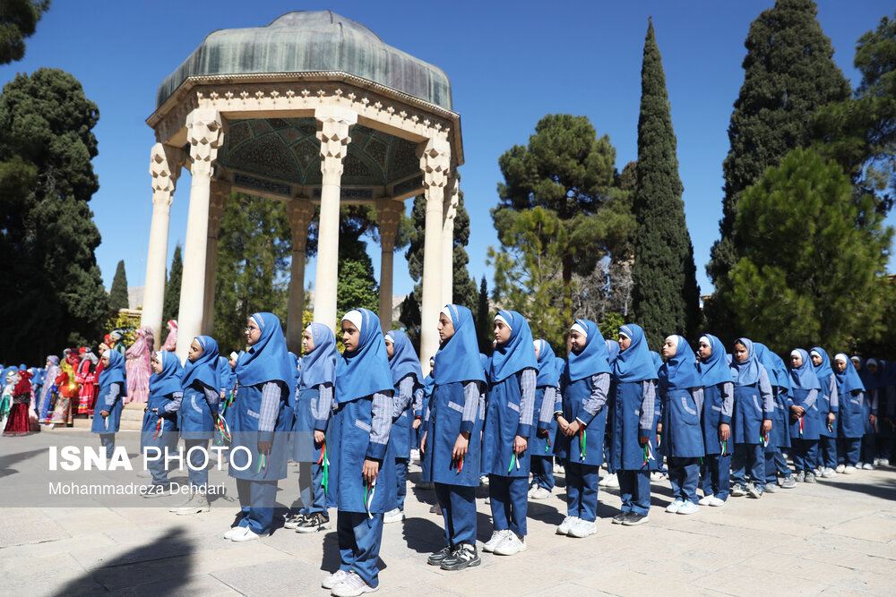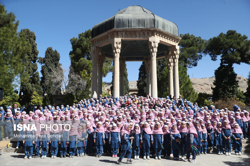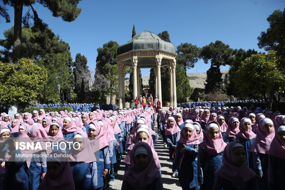• اجتماع گسترده دانش‌آموزان شیرازی و اجرای سرود همگانی در مجموعه تاریخی حافظیه شیراز