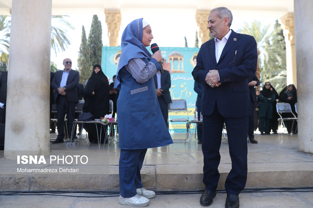 • در حاشیه حضور وزیر اموزش و پرورش درمجموعه تاریخی حافظیه و اجتماع گسترده دانش‌آموزان شیرازی و اجرای سرود همگانی
