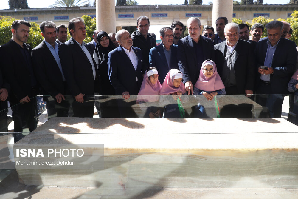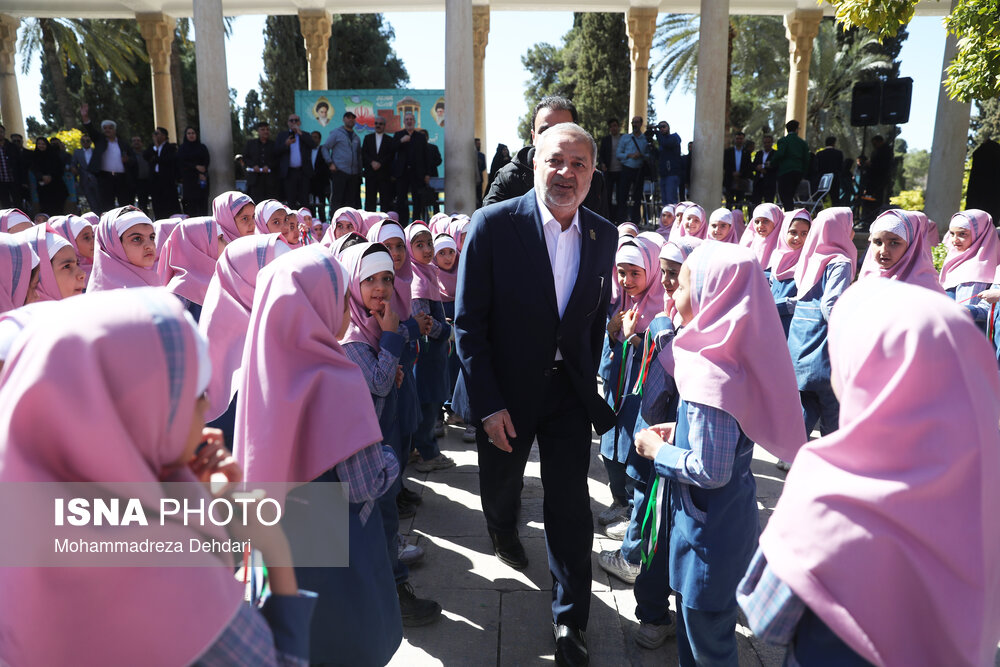 • حضور وزیر اموزش و پرورش درمجموعه تاریخی حافظیه و اجتماع گسترده دانش‌آموزان شیرازی و اجرای سرود همگانی
