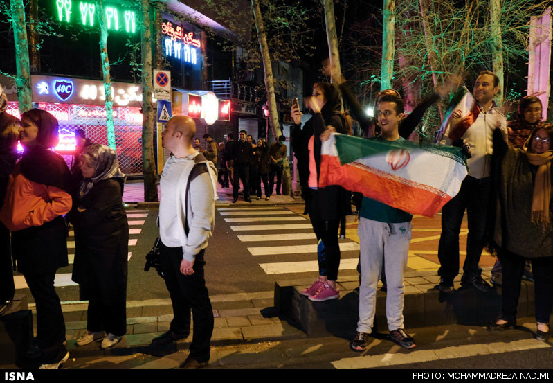گزارش تصویری شادی پس از قرائت بیانیه توافق هسته‌ای - تهران
