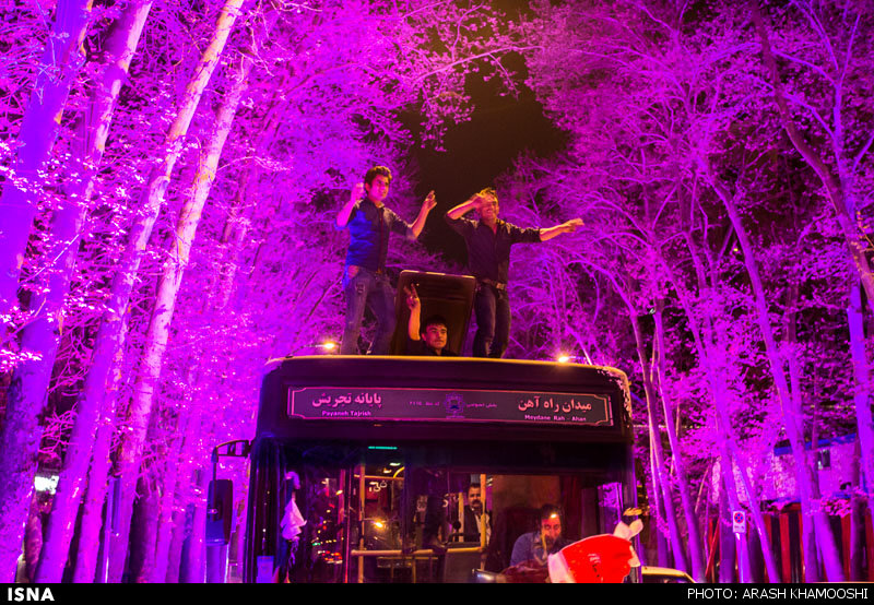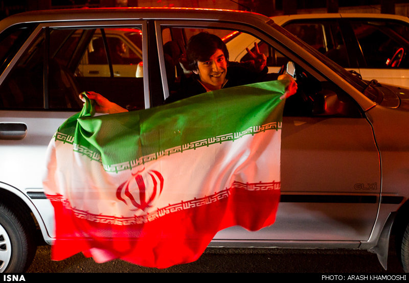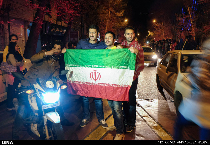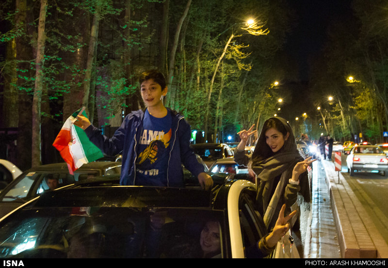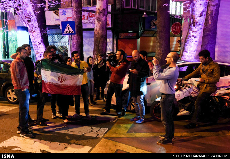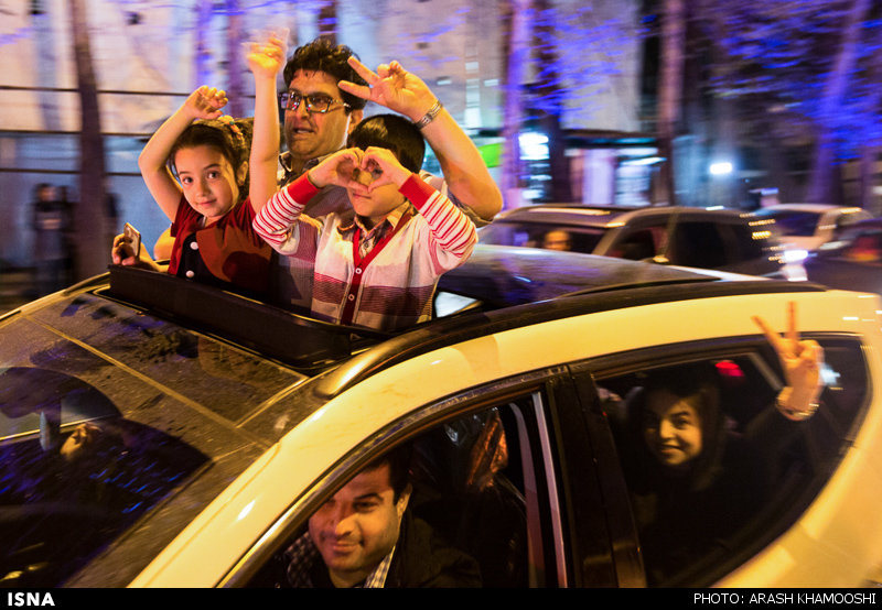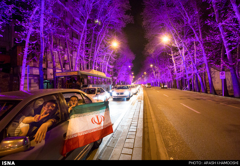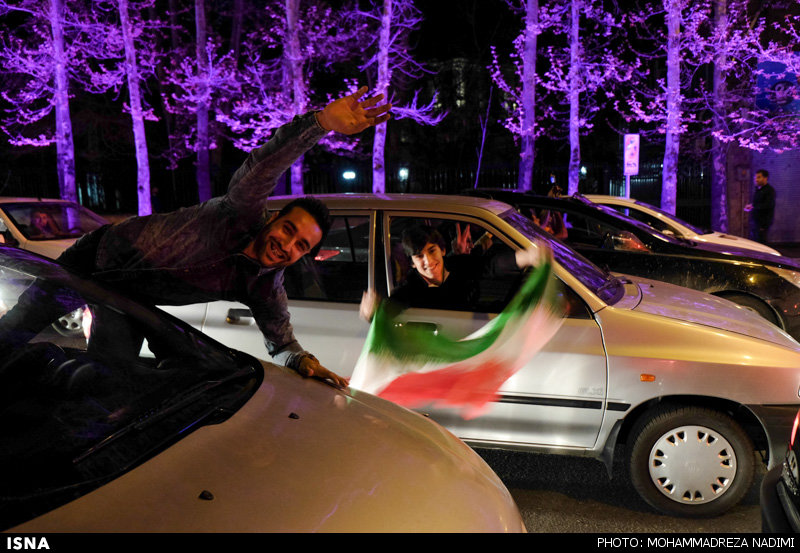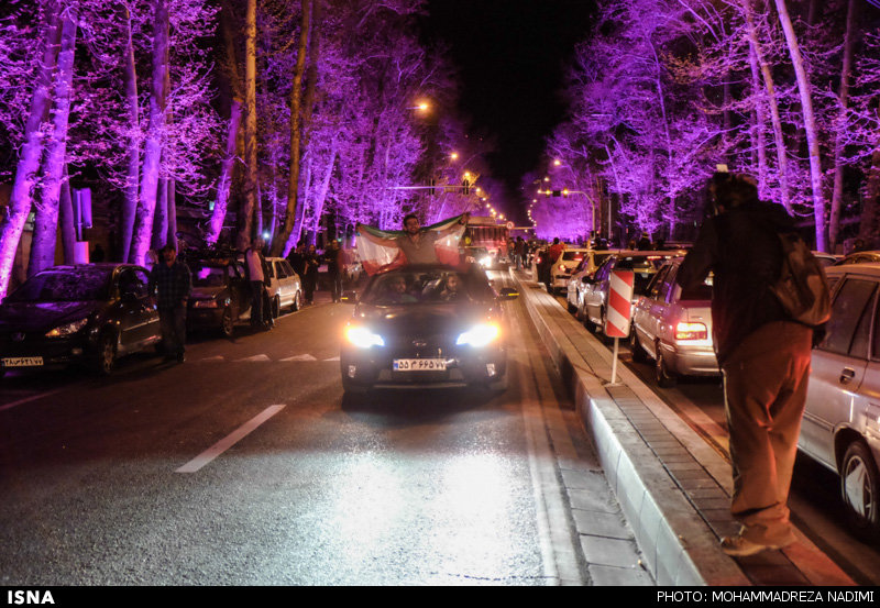 پس از اعلام تفاهم میان ایران و 1+5 ، برخی از اهالی تهران با حضور در خیابان‌ها رضایت خود را نسبت به تلاش‌های تیم مذاکره کننده کشورمان اعلام کردند.