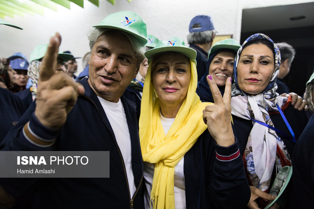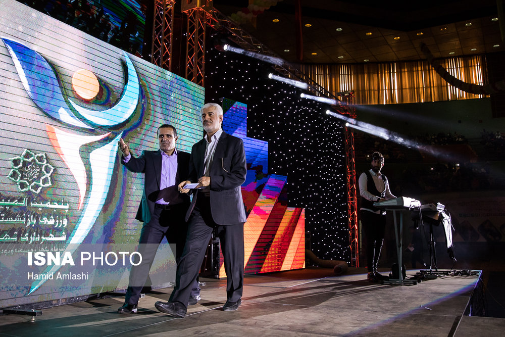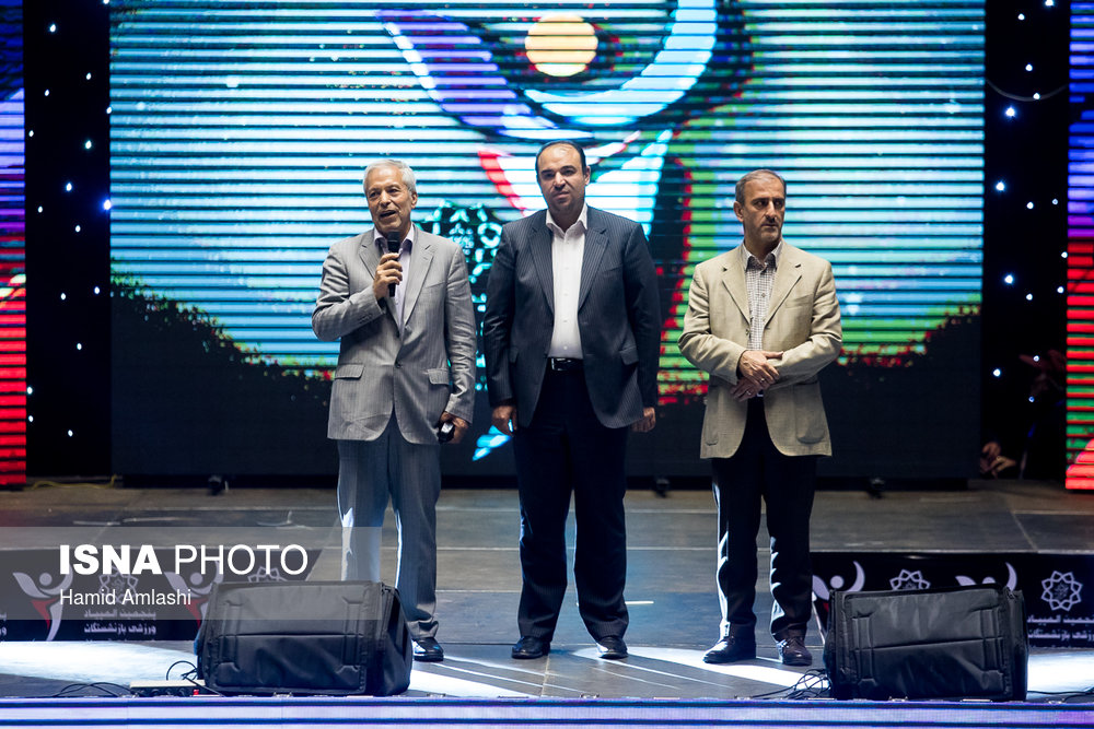 • حضور افشین حبیب‌زاده(راست) و محمود میرلوحی (چپ) ، از اعضای شورای شهر تهران در پنجمین المپیاد ورزشی بازنشستگان شهرداری تهران