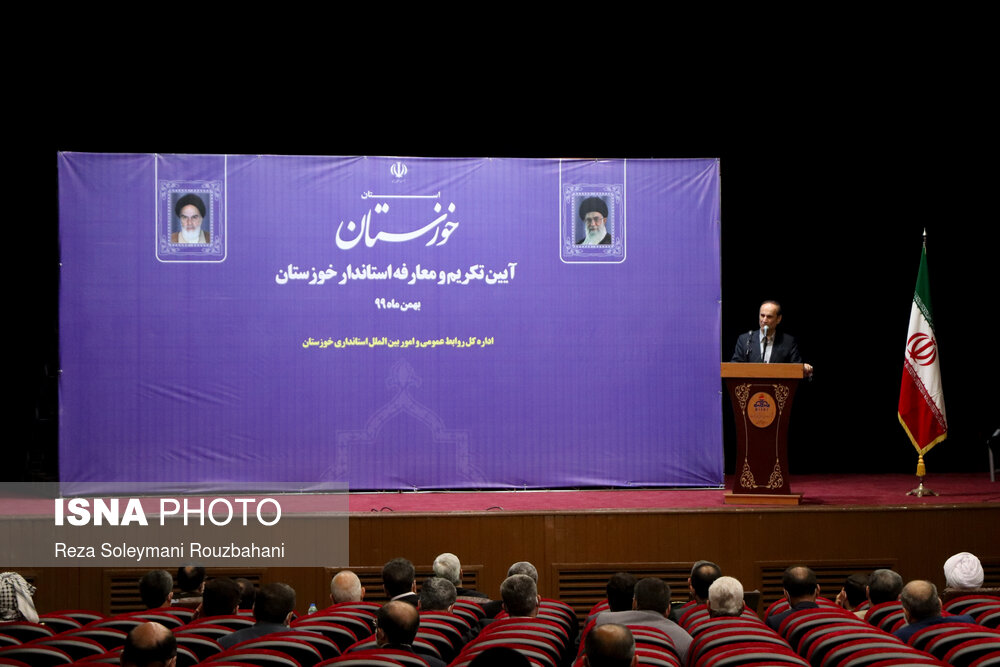 آیین تکریم و معارفه استاندار خوزستان امروز (۳۰ بهمن) در سالن اجتماعات امام رضا شهرک نفت اهواز برگزار شد. عکس: رضا سلیمانی روزبهانی