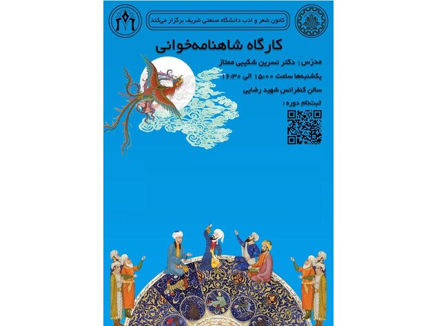 کارگاه شاهنامهخوانی یکشنبهها از ساعت ۱۵ تا ۱۶:۳۰ در سالن کنفرانس شهید رضایی دانشگاه صنعتی شریف برگزار میشود.